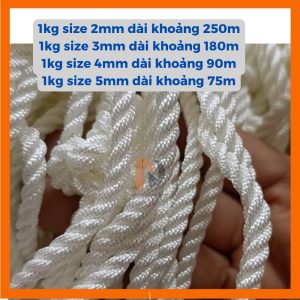 – Sợi 2mm: 1kg ~ 250 mét dài